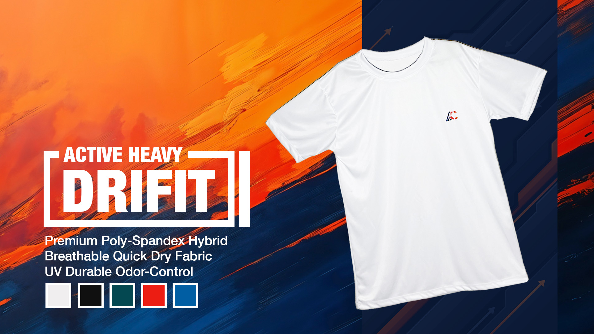 The Active Heavy DriFit delivers premium performance with a thicker, more durable athletic fabric designed for daily wear, training, and outdoor use. Made from a premium poly‑spandex blend, it offers strong structure, fast sweat‑drying capability, and long-lasting comfort. Reinforced stitching and odor‑control technology make it ideal for active lifestyles and uniform use.